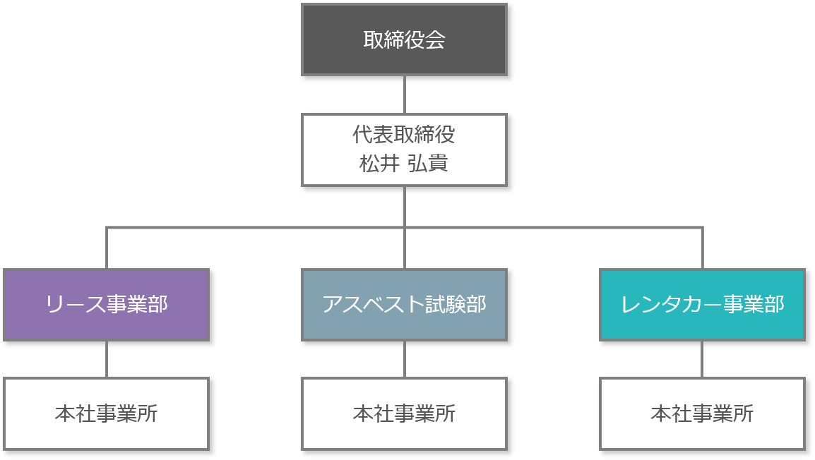 | 事業内容 | アスベスト試験 仮設資材レンタル・販売 レンタカー事業 |